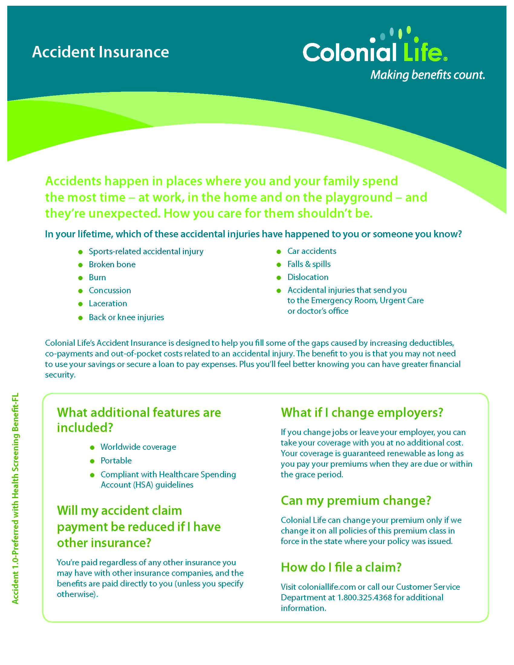 Benefits include: Doctor visits, physical therapy, ER, Hospital stays, fractures and dislocations, ruptured disk, burns, lacerations, surgeries, slip and fall, and many additional plan features!