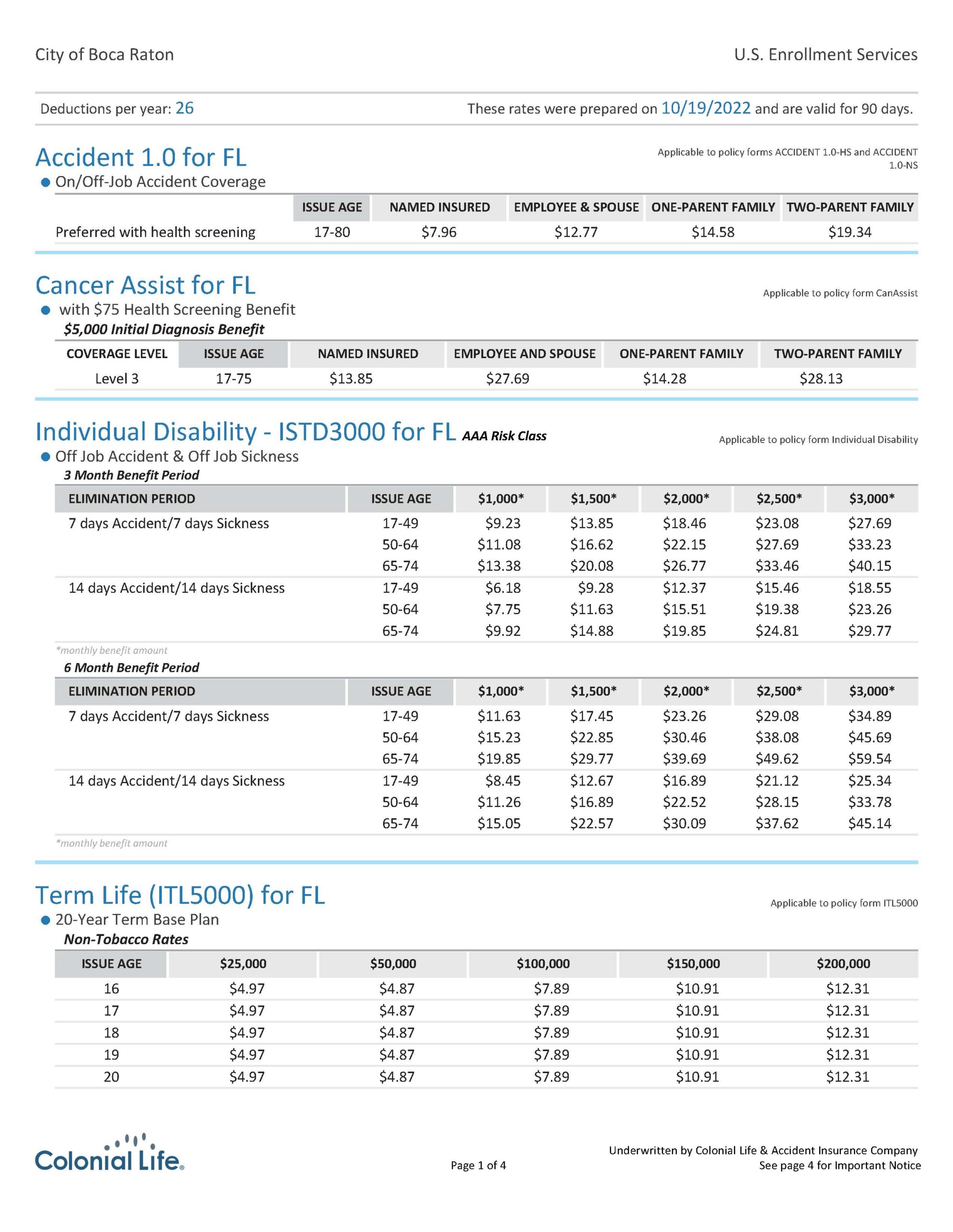 The City of Boca Raton is excited to include voluntary employee‐paid benefits offered through Colonial Life and enrolled by U.S. Enrollment Services. City of Boca Raton will set up automatic post‐tax pay‐roll deductions for these benefits which will be effective the first of the month after you enroll.